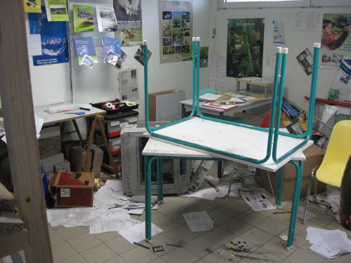 2007. Dans la nuit du 26 au 27 février, les bureaux brestois d'Eau & Rivières sont vandalisés. "Quand je suis arrivé, j'ai vu le nom d'un de nos adhérents tagué sur le mur du bâtiment et j'ai compris qu'on avait eu de la visite pendant la nuit", raconte Arnaud Clugery, alors animateur. Quand il pousse la porte du bureau, situé au bas d'une tour du quartier de Keredern, il est stupéfait : tout le mobilier a été retourné, les papiers jonchent le sol, la photocopieuse et les ordinateurs sont à terre...