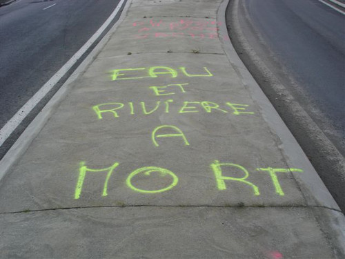 Sur la route de Ploudaniel, une inscription sans équivoque : "Eau et rivière à mort".