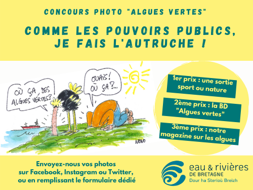 En 2009, Chantal Jouanno, secrétaire d’Etat à l’écologie promettait « sur les algues vertes, la politique de l’autruche c’est fini ». Et pourtant, plus de dix ans sont passés et rien n’est réglé. Nous invitons donc tous les citoyens à se prendre en photo jusqu’à la fin de l’été, la tête dans un trou (dans le jardin, à la mer) ou dans un seau pour ceux qui ne peuvent pas creuser !