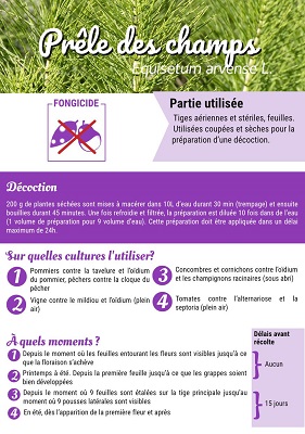 Ce printemps voit la parution de 4 fiches présentant le vinaigre, l’ortie, la prêle et le bicarbonate de soude. Sur chaque fiche, la substance est présentée et détaillée : nom ; mode d’action ; usages et dosages ; précautions d’emploi ; alternatives éventuelles (techniques culturales par exemple).