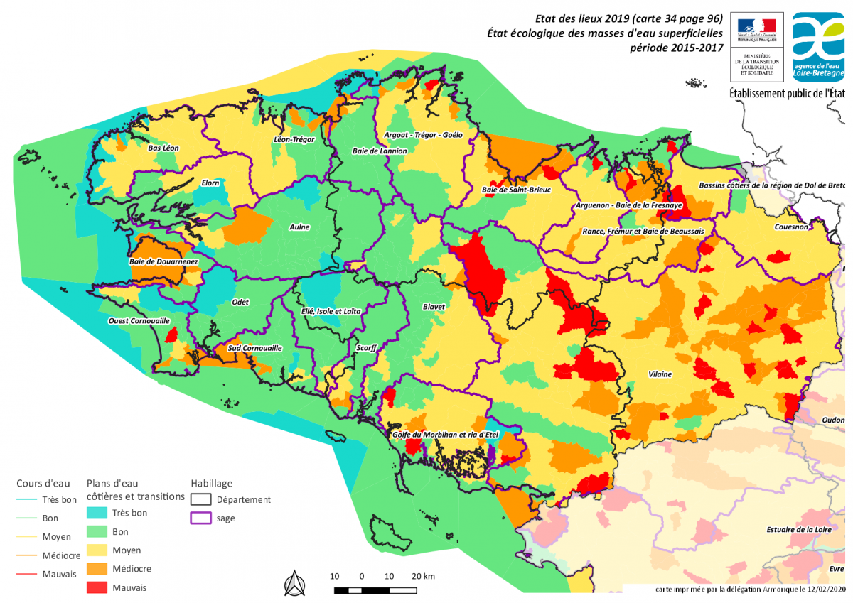 Ainsi pour Jean-Yves Piriou (vice-président d’Eau & Rivières et représentant au comité de bassin) « Malgré une bonne mobilisation des acteurs, en particulier en Bretagne, depuis 20 ans, les résultats ne sont pas à la hauteur, il y a toujours autant d’algues vertes sur nos plages, autant de micro-algues toxiques et de bactéries dans nos eaux côtières, autant de molécules de pesticides dans nos rivières et nappes phréatiques, autant de cours d’eau à la morphologie dégradée et à la continuité écologique entravée...»
