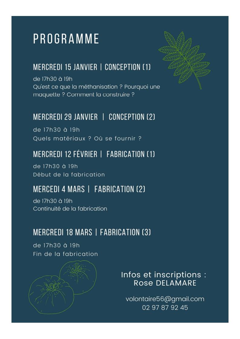 Les ateliers débuteront en janvier prochain, et sont ouverts à tous. Des participants de tous les horizons sont les bienvenus : des jeunes engagés pour le climat, des adhérents d’ERB souhaitant participer aux activités de la délégation, des curieux ayant un goût pour les travaux manuels, … Ces ateliers permettent de mettre en commun les connaissances, le point de vue et les compétences de chacun pour fabriquer la maquette la plus pertinente et fonctionnelle possible. Aussi, ce sera l’occasion de sensibiliser les participants aux enjeux et risques de la méthanisation.