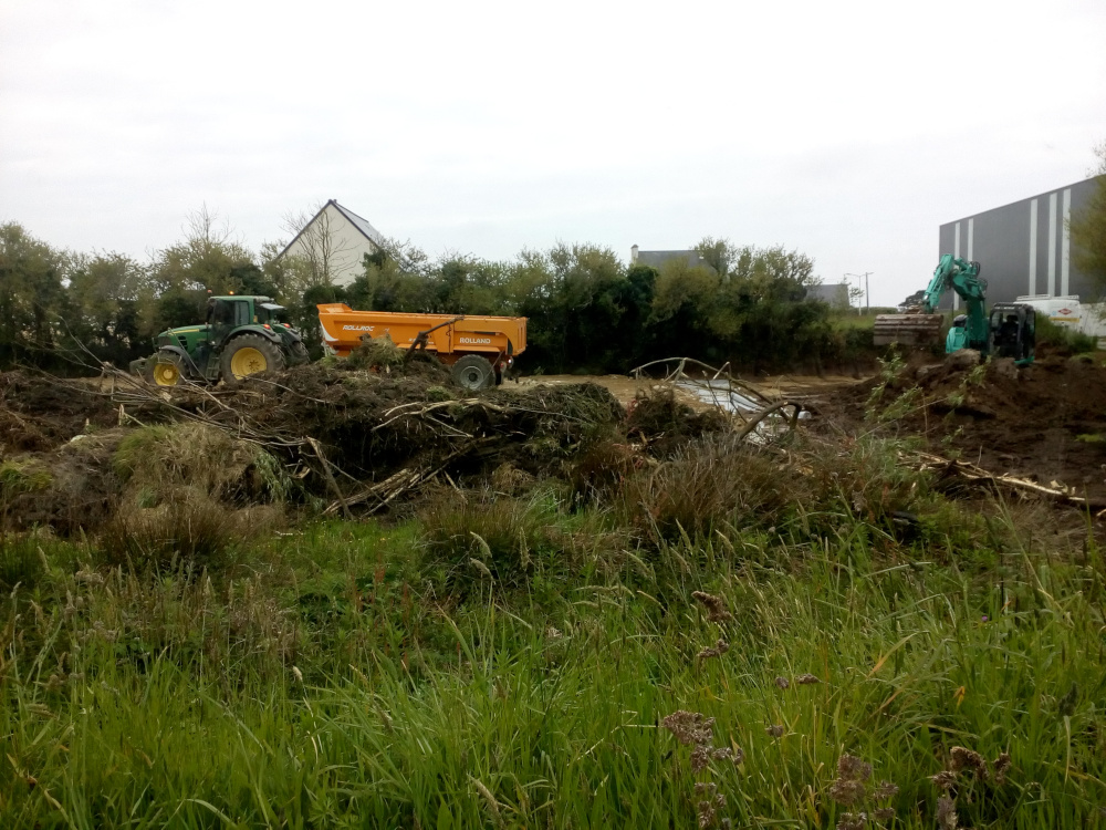 Notre association a été informée d’un remblai en cours sur une zone humide de Portsall sur la commune de Ploudalmézeau. Les faits datent de fin avril, début mai : toute la terre arable d’une parcelle avait été retirée puis poussée en bordure, venant presque à boucher le ruisseau permanent qui la longe. Ces travaux se sont déroulés dans le cadre de la création d’un parking, en lien avec la rénovation-extension du complexe sportif du Coum et du collège sur lequel l’exutoire eaux pluviales vient s’insérer dans le ruisseau. Il y aura donc inévitablement eu en amont de ces travaux un dossier « loi sur l’eau » qui aura été expertisé et validé ou non par la Direction départementale des territoires et de la mer !