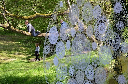 . Les nombreux visiteurs on également apprécié les œuvres des tisseuses de lien. Des broderies géantes tendues au dessus de l'eau et entre les arbres sur les rives;