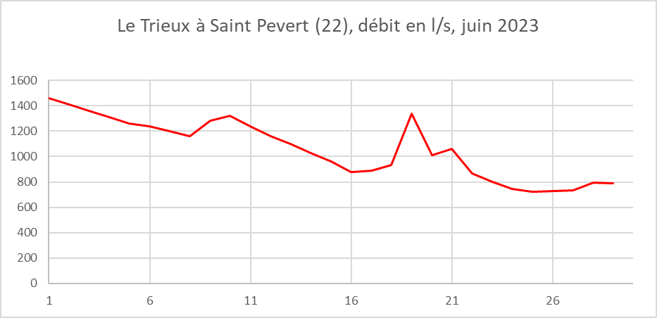 Du coté du niveau des rivières bretonnes, nous assistons à une baisse régulière de leur débit entrecoupée de petites hausses pendant les périodes pluvieuses, sans que cela interfère avec cette tendance à la baisse, retrouvée au bout de quelques jours.
