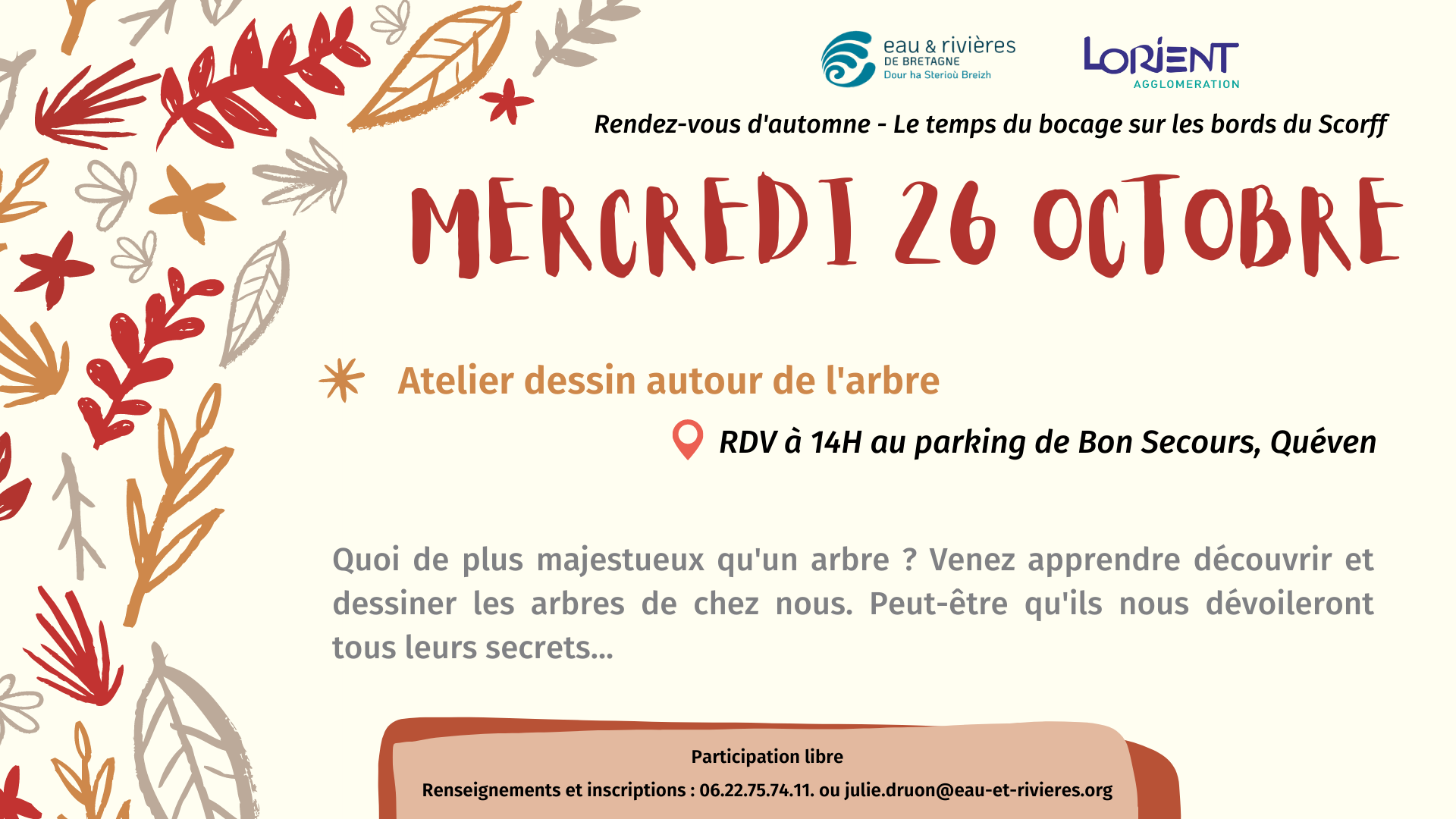 Participation libre - Renseignements et inscriptions : 06.22.75.74.11. ou julie.druon@eau-et-rivieres.org